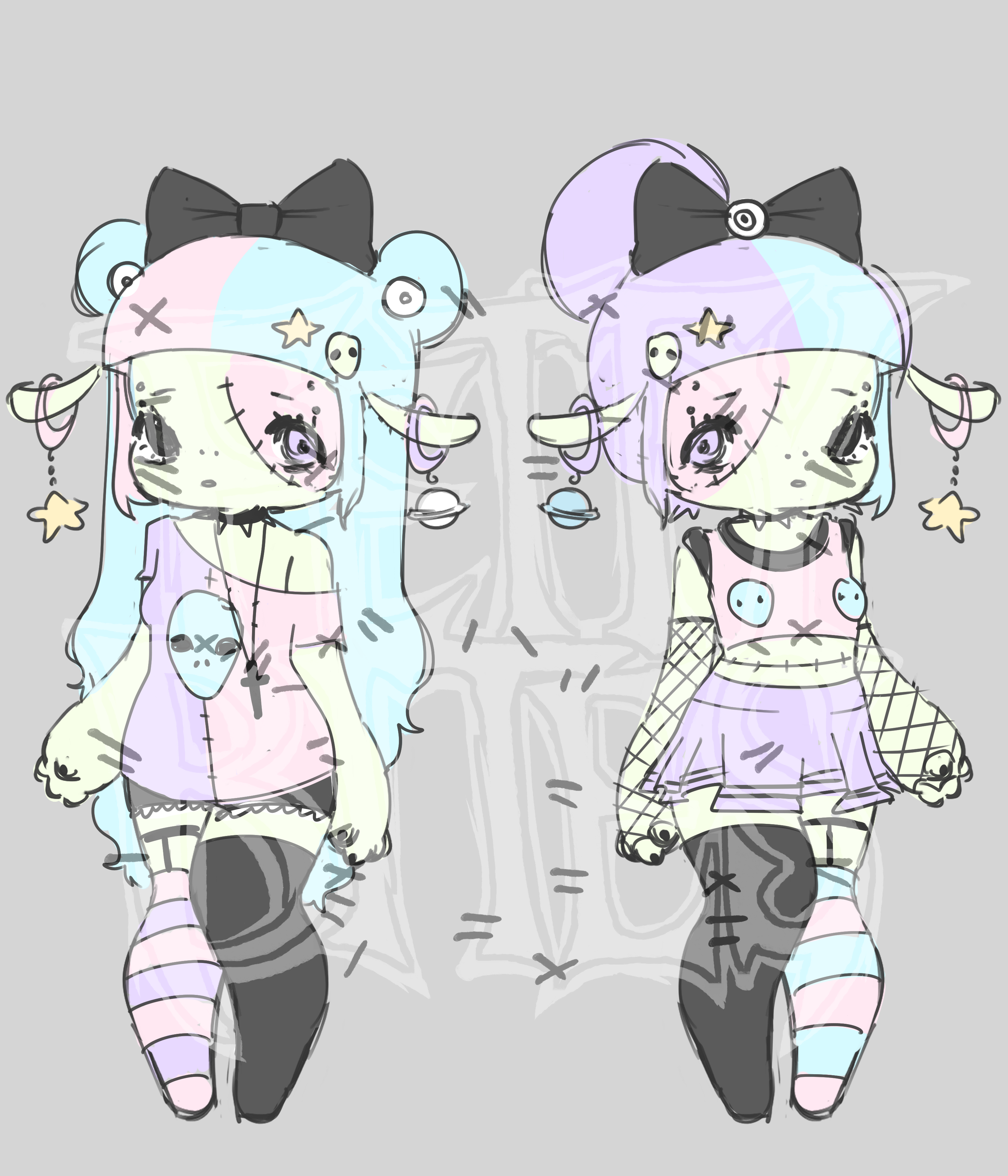 . i typically use one of my own premade bases for customs. you can view them below. if requested, i can draw a completely new base for +$8